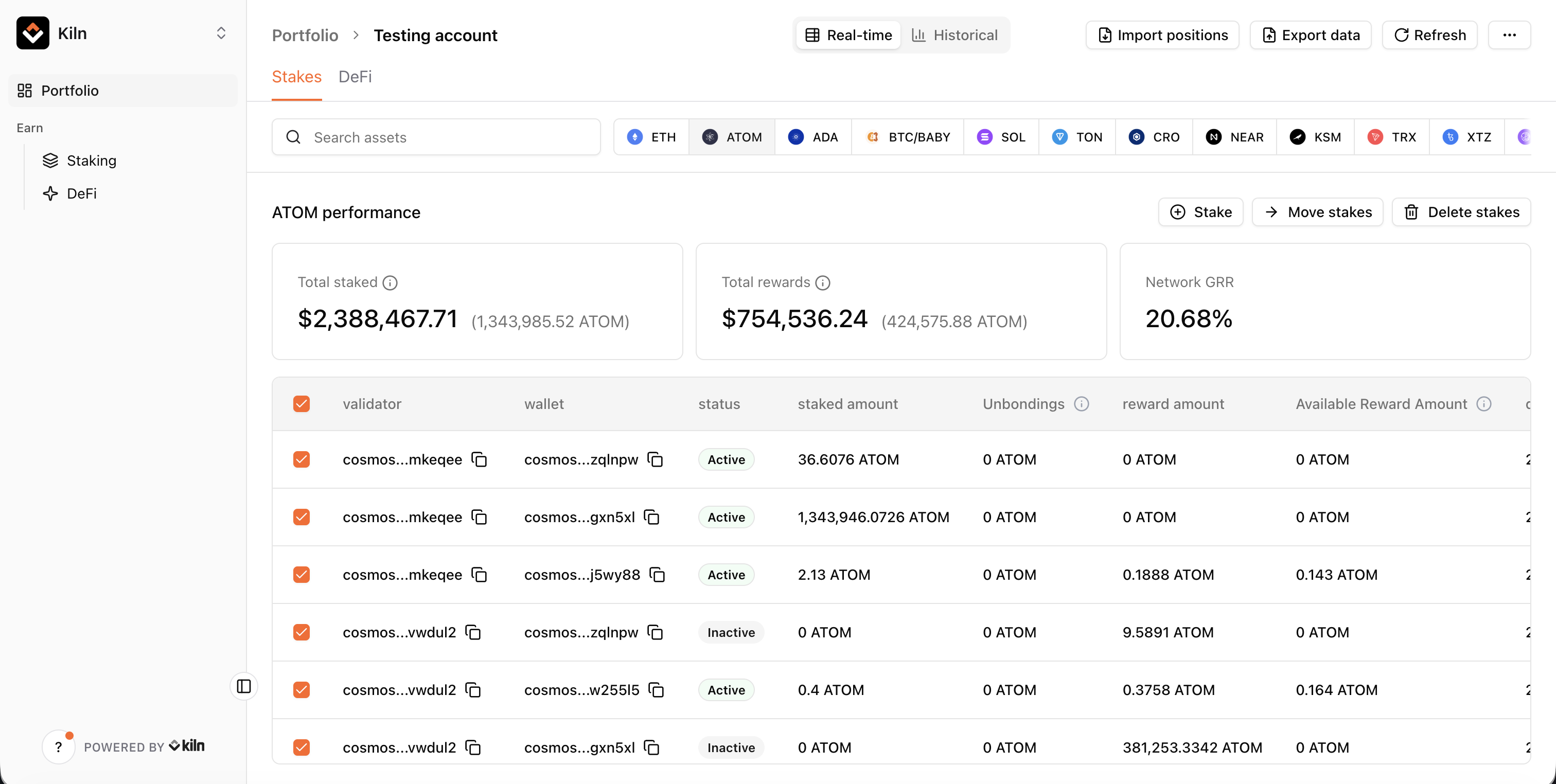 On the dashboard you have the possibility to move stakes from an account to another. This is useful when you need to cleanup your accounts without having to import all stakes again.